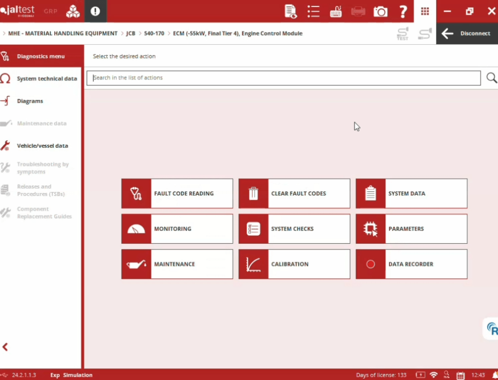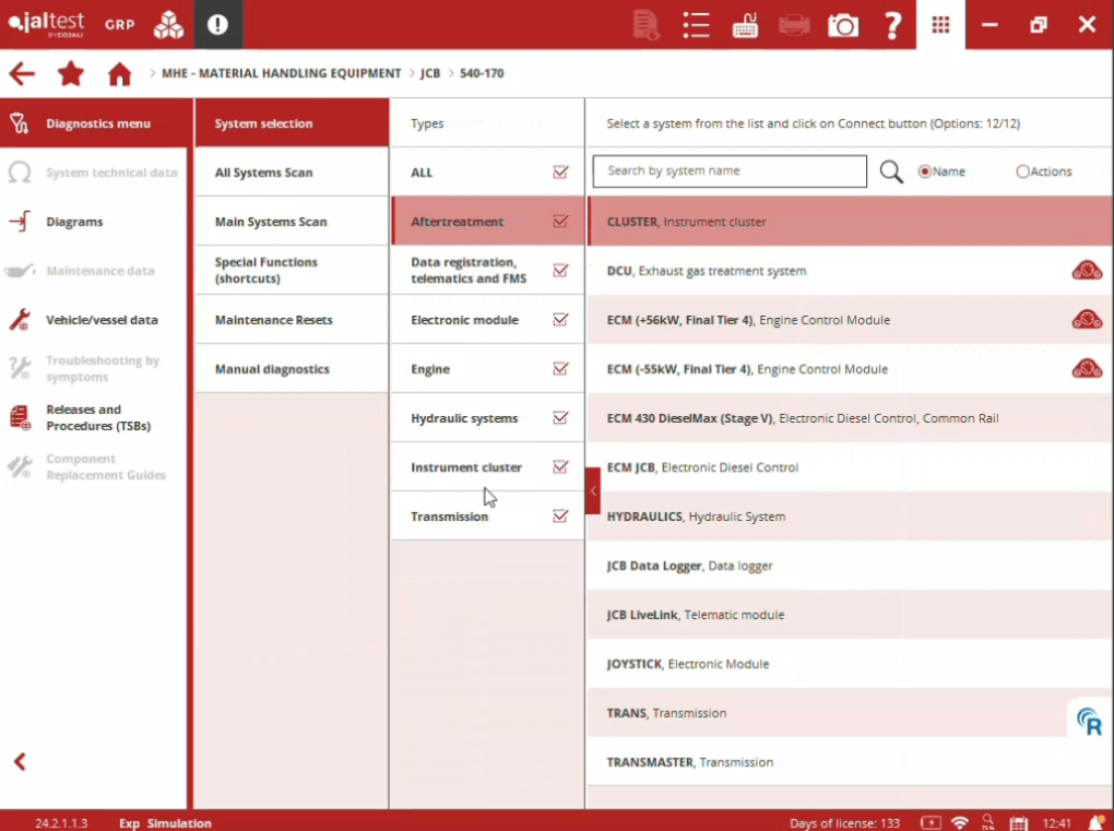 Voici un aperçu rapide de certains des systèmes pris en charge par le logiciel de diagnostic Jaltest JCB.