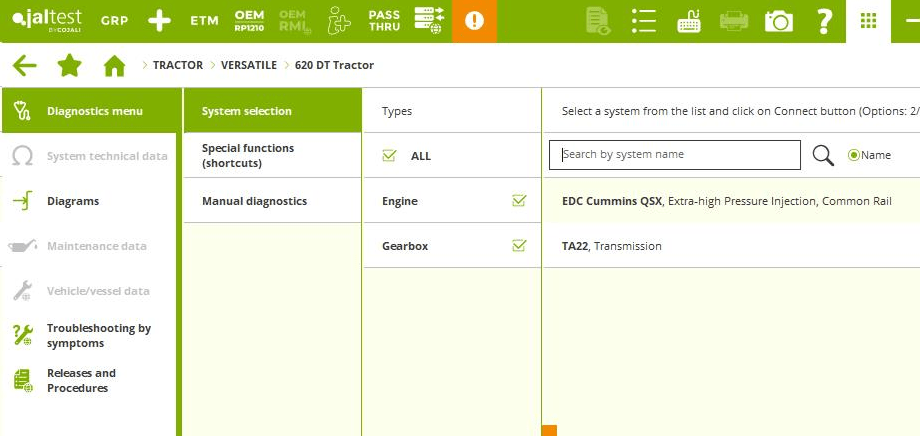 This wide and deep coverage has several benefits. With one Jaltest Versatile tractor diagnostic code, you can carry out in-depth diagnosis and fault code resolutions for a range of models without needing to invest in individual software for a mixed fleet.