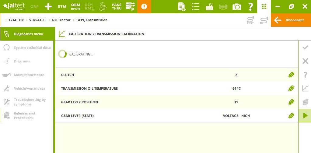 The diagnostics of these critical systems is available from Jaltest across the entire range of high-demand models of the Versatile series. These are Versatile 310, 335, 365, 375, 405, 430, 460 and Versatile 550, 570, 610 (DeltaTrack).